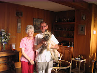 President Tom Shiels (middle) presided over proceedings and Pat and I were presented with beautifully carved wooden pens as a memento of our visit. These had been carved by our host, and Club Secretary, David Small, ( second from right) and pictured below with his wife Beth and ‘Lass’ their cairn terrier.